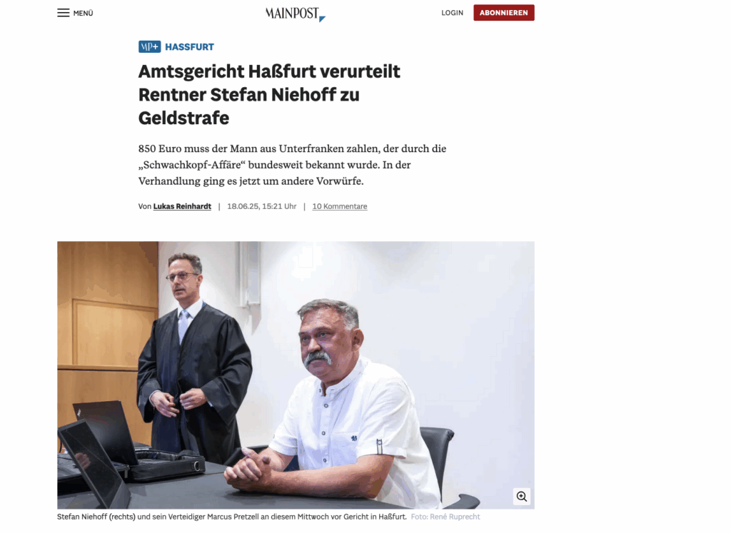 Seit Wochen beschäftigt die Schwachkopf-Affäre Deutschland. Viele Bürger waren entsetzt über das Vorgehen der Polizei und spendeten Geld für die Verteidigung des Rentners. Heute hat Familie Niehoff JF-Chefredakteur Dieter Stein getroffen.